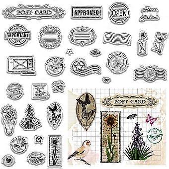 2 Sheets Postmark Clear Rubber Stamps Postcard Label Frame Vintage Reusable Transparent Silicone Stamp Seals for Journaling Card Making Scrapbooking P