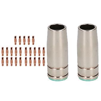 2 shroud & 25 x 1.0mm Contact Tips MIG Welding Binzel Style Euro Torch MB25