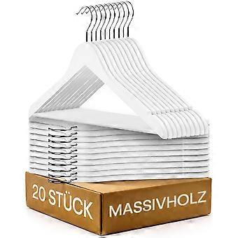 20 Clothes Hangers Wood White 360° Rotating Hook Notches in Shoulder Area Hanger with Trouser Bar FSC Solid Wood