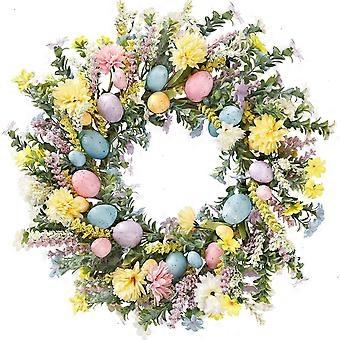20 Inch Easter Wreath With Pastel Eggs And Mixed Twigs, Artificial Door Wreath For Easter Decorations