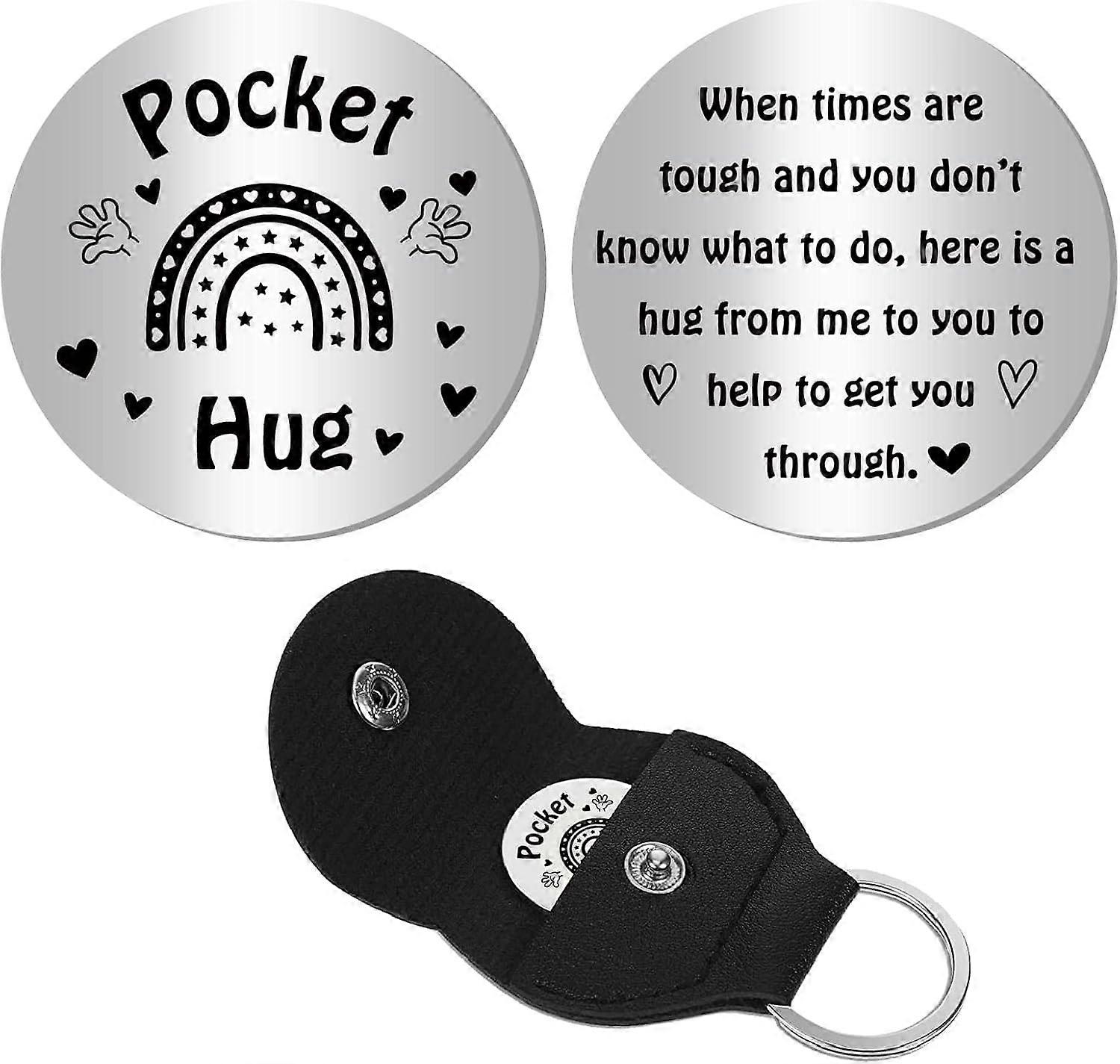 201 Stainless Steel Commemorative Coins Pocket Hug Coin Inspirational Quote Coin Decision Maker Flat Round Stainless Steel Color with PU Leather Guita