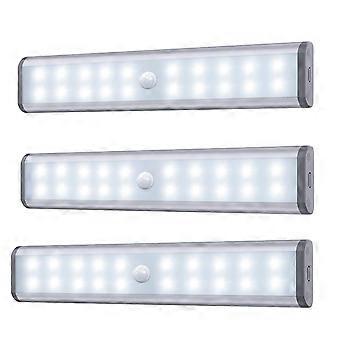 20LED Motion Sensor Closet Light, Rechargeable Under-Cabinet Lighting, Battery-Powered, Ideal for Wardrobes, Kitchens, Pantry (3-Pack)