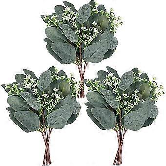 20pcs Artificial Eucalyptus Leaves Stems With White Seeds Short Sier Dollar Faux Eucalyptus Branches Greenery Plants,9546