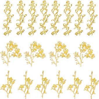 24Pcs 3 Style 18K Gold Plated Tree Branch Multi Holes Charms with Rhinestone Branch with Flower Pendant for Handmade Jewelry Making Accessory Crafts