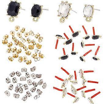 24Pcs 4 Style 925 Sterling Sliver Stud Earrings 925 Sterling Sliver Pin Earrings with Loop Rhinestone Stud Earrings with 50pcs Ear Nuts for DIY Earrin