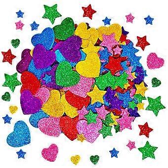 260 Pieces Self Adhesive Colorful Glitter Foam Stickers - Mini Heart Shapes and Star Designs for Crafts and Decorations