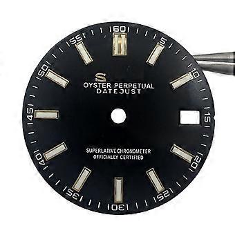 28.5MM Watch Dial for NH35/36/4R/7S Movement Full-point Numerals Scale Studs Green Luminous Accessories (Black Face Gold Studs)