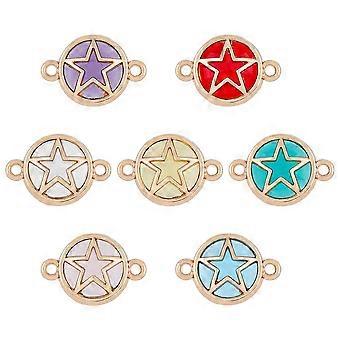 28pcs 7 colors Glass Connector Charms with Light Gold Plated Alloy Findings Flat Round with Star Mixed Color 13.5x19.5x5.5mm Hole: 1.6mm 4pcs/color