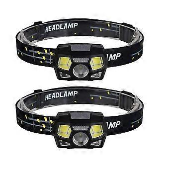2pcs LED Headlamp USB XPE COB Red Flash Motion Sensor Headlight Flashlight for Camping Hunting(Black)