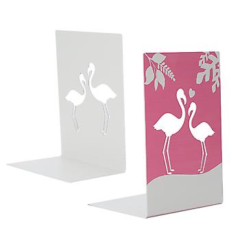 2Pcs Metal Bookends Stable Desktop Book Stopper Supporting Shelves for Home OfficeFor Flamingo
