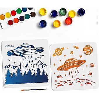 2pcs UFO Planet Space Stencils 11.811.8inch Large Spaceships Stencil Template with Paint Brush Square Space Theme Stencils on Wood Canvas Fabric Wall