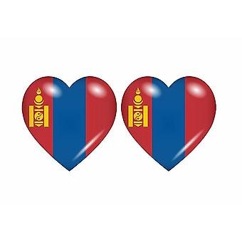 2x Stick sticker heart flag MN Mongolia