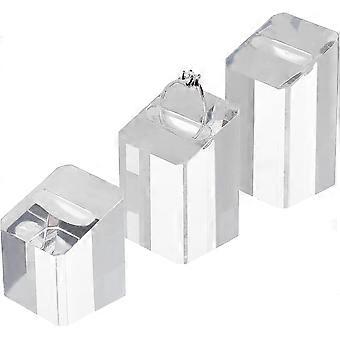 3 Pcs Clear Acrylic Rings Display Stands (3 Heights: 3.5 & 4.6 & 5.5 cm) Square Base Ring Organizer Ring Showcase Display Holder Ring Shiny Blocks for