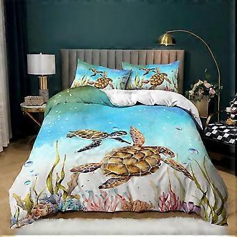 3 Piece Soft Bedding Set for Kids Beach Turtle Comforter Cover Set Full 79'x89'