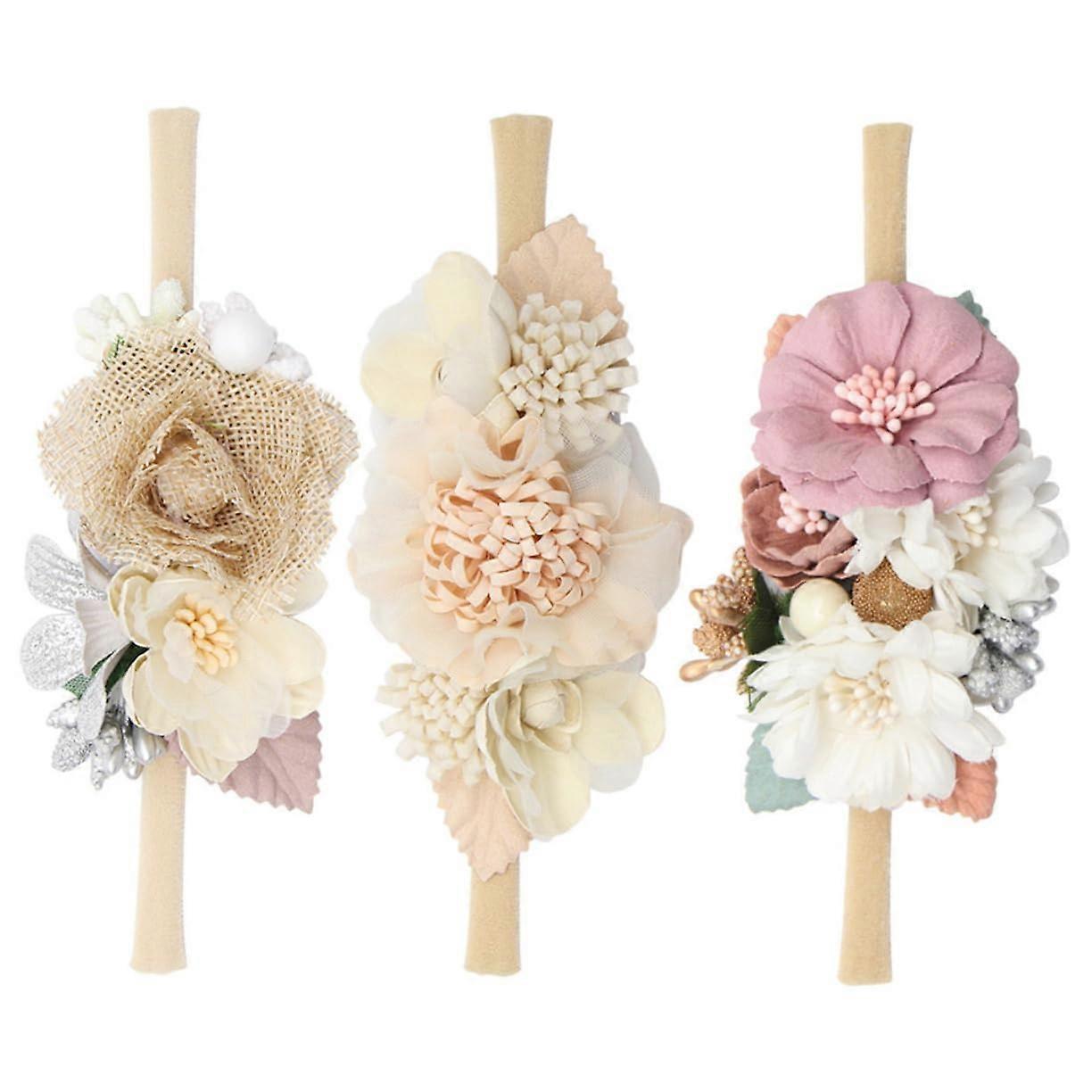 3-Piece Toddler Floral Headbands with Delicate Flower Designs for Everyday Use, Photoshoots, and Celebrations