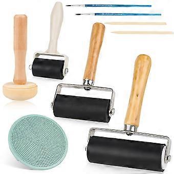 3 Pieces Rubber Roller Lino Printing with 1 Mushroom Roller and 1 Engraving 3.5 cm / 6 cm / 10 cm Painter's Roller for Ink Colour Block, Stamping