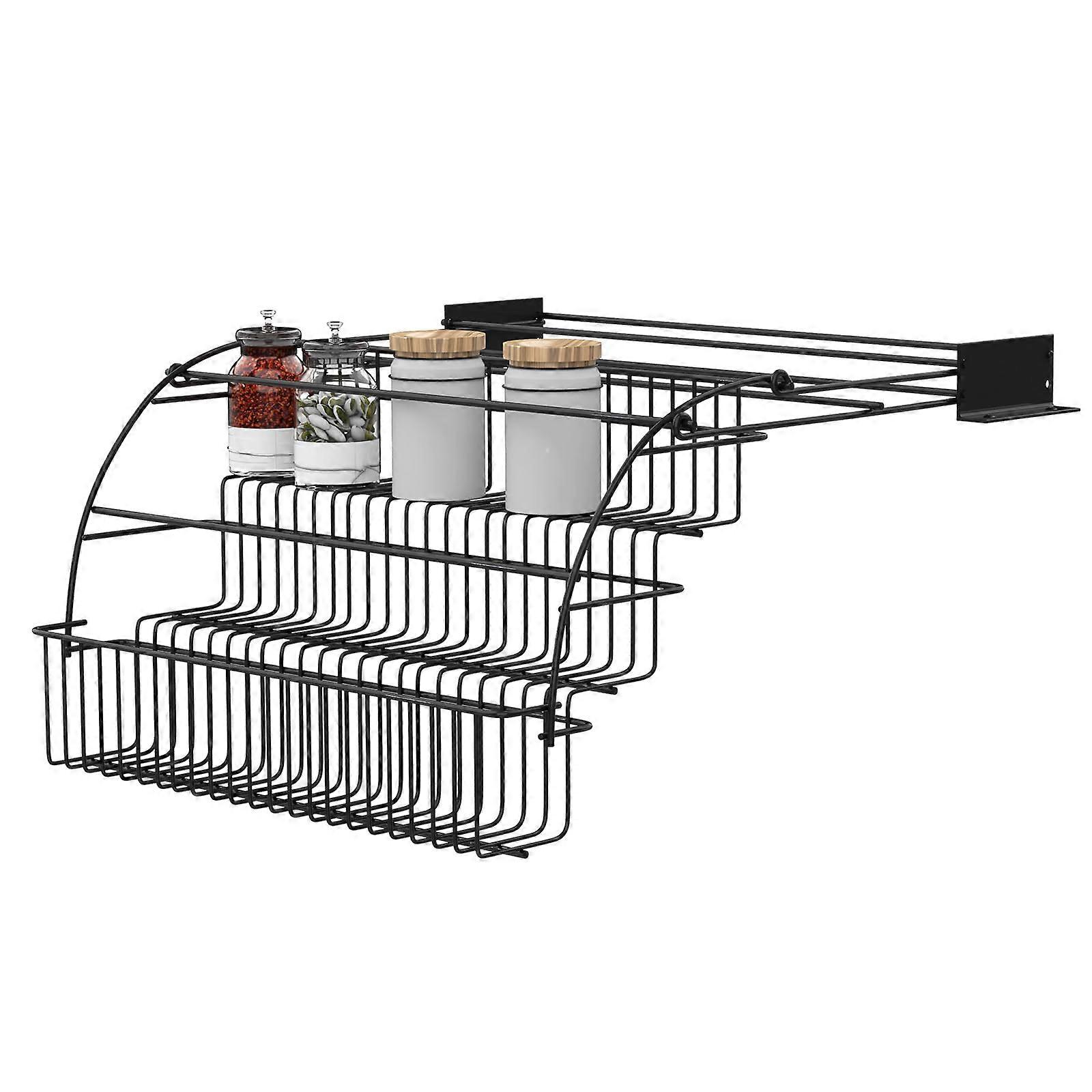 3 Tier Pull Down Spice Rack - Metal Adjustable Seasoning Organizer for Kitchen Cabinet, Retractable Storage Holder with Hollowed Base