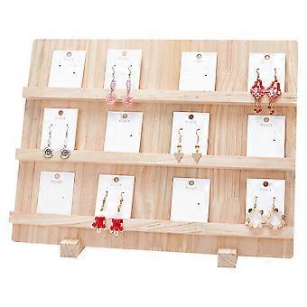 3-Tier Rectangle Wooden Earring Display Card Stands Tabletop Earring Display Card Organizer Holder Navajo White Finish Product: 14x40x28.5cm