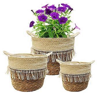 3 x Plant Basket, Flower Pot, Sea Grass Planter, Boho, with Lining Hcl4