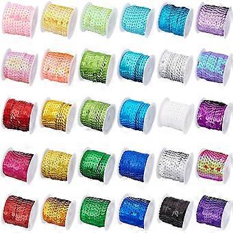 30 Color Flat Sequin Strip 6mm Spangle Flat Sequins Paillette Trim String Sequins Ribbon Metallic Shiny Trim Sewing String for Mermaid Crafts Embellis