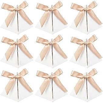 30 Pcs Triangle Paper Favor Boxes with Polyester Ribbon (White7x7x8 Inch) Chocolate Candy Paper Gift Boxes Paper Jewelry Box for Bridal Shower Anniver
