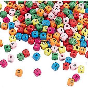 300pcs Alphabet Wooden Beads Colorful Wood Letter Beads 10mm Square Cube Letter Beads Random Mixed Letters Dyed Wooden Loose Beads with Alphabet for J