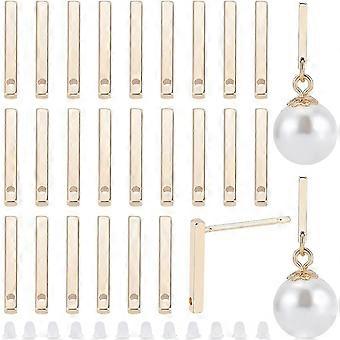 30Pcs Real 18k Gold Plated Brass Stud Earrings Accessories Oval Brass Studs with Loops Rectangular Studs