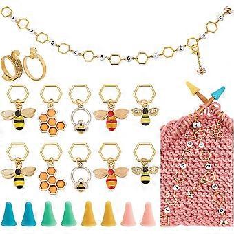 33 Pcs Stitch Markers Kits Including 10Pcs Bee Locking Stitch Markers 1Pc Knitting Row Counter Chains 20Pcs Knitting Needle Stoppers 2Pcs Yarn Guide F
