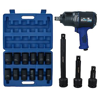 3/4” Drive Air Impact Wrench Gun 2000 Nm + 12 Sockets 24 – 41mm + Extensions