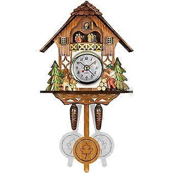 3D Mini Cuckoo Clock Wooden Cuckoo Wall Clock 14x6x26 cm Retro Nordic Style Vintage Bird Clock For Home Decoration