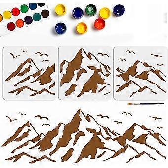 3pcs Mountain Stencil 3310.9inch Splicing Style Mountain Bird Template with Paint Brush Reusable Mountains Landscape Stencil for DIY Wall Art Furnitur