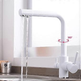 3Way Brass Kitchen Sink Faucet with 360° Rotation, 3in1 Multifunction Faucet for Water Filter System, Gold (Color: Nero)