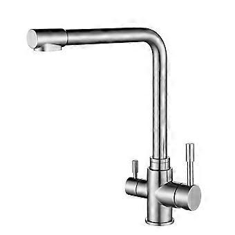 3Way Kitchen Sink Tap with Filter 360° Rotating Stainless Steel Brushed
