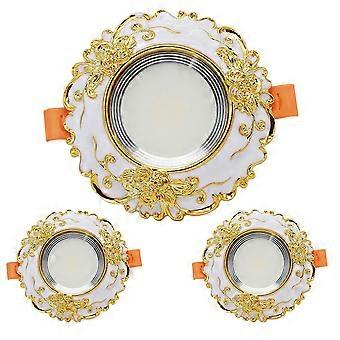 4 Inch LED Recessed Spotlight with Hand-Carved Resin Baffle, Dimmable Ceiling Light, 3-CCT Adjustable Bracket, Pack of 3 White 7W