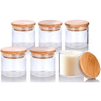 4 oz Clear Glass Borosilicate Jars for Candle Making with Bamboo Lids (6 Pack)