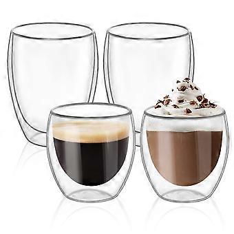 4 Set Double Walled Glass Coffee Mugs for Cafe Latte Milk Juice 12 OZ/8 OZ