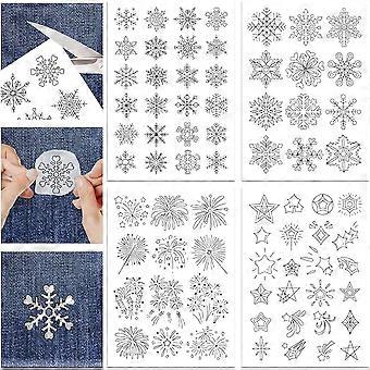 4 Sheets Snowflakes and Fireworks Water Soluble Stabilizer Hand Sewing Stabilizers with Pre Printed Stick and Stitch Self Adhesive Wash Away Stabilize