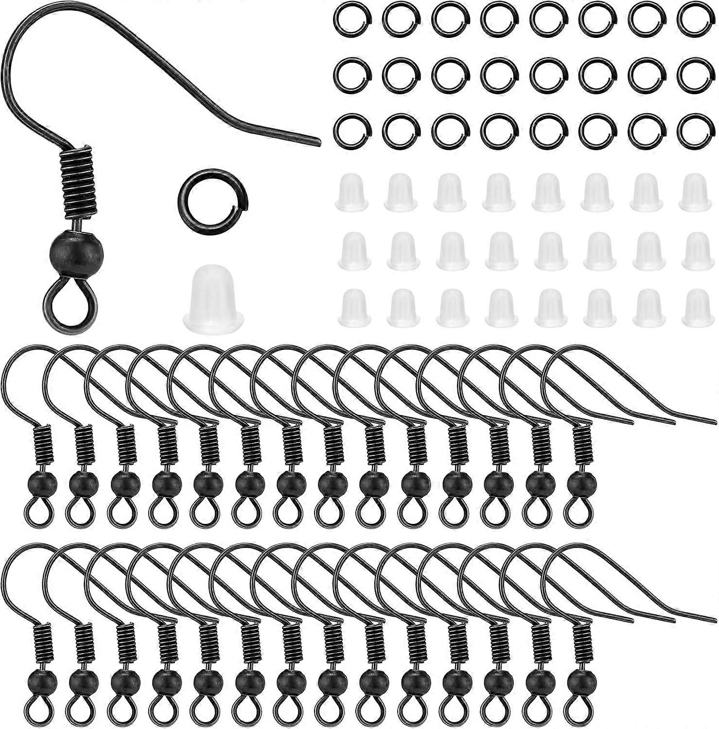 400pcs Black Earring Hook Earring Making Kit with Loops with Jump Rings and Plastic Ear Nuts Earring Back Connects for DIY Jewelry Making Supplies Acc