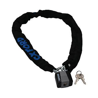 Lightweight chain with a flexible cloth sleeve to protect paintworkRound steel chain linksIncludes a 40mm padlock in a protective caseSpecifications:Lock Size: 40mm PadlockLength: 900mmThickness: 6mmLink Shape: Round2 Spare KeysCloth Sleeve