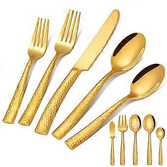 45 Piece Stainless Steel Silverware Set with Hammered Gold Finish for Large Home Dining, Durable and Elegant Design
