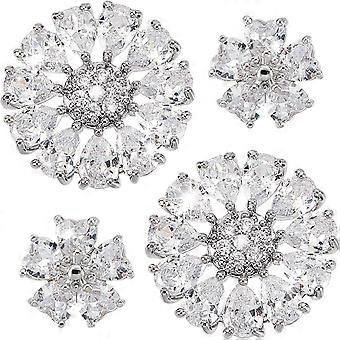 4Pcs 2 Styles 1-Hole Alloy Shank Button with Cubic Zirconia Flower Clear 13~24x14~24x4.5~6mm Hole: 1.2mm 2pcs/style