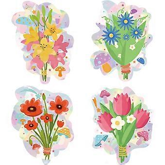 4Pcs Laser Window Sticker Adhesive Static Stickers Flowers and Mushrooms Electrostatic Window Stickers Double Sided Window Stickers Static Clings Wind