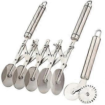 5-Wheel Dough Cutter Set of 2 - Adjustable Stainless Steel Pizza Slicer and Round Pastry Wheel for Baking