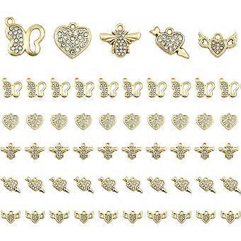 50Pcs 5Styles Cubic Zirconia Alloy Charms Rack Plating Alloy Pendants with Crystal Rhinestone Heart Bees Butterfly Wing