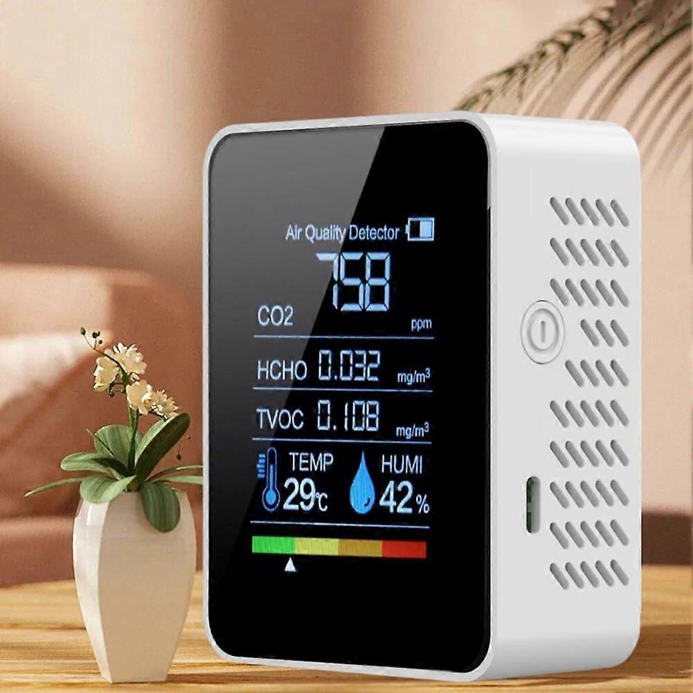 5In1 Carbon Dioxide Detector, Air Quality Meters, Air Test Kit Temperature Humidity HCHO TVOC Carbon Dioxide Monitor For Home Indoor Ref: 2408