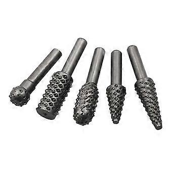 5pcs 1/4 Inch Drill Bit Rasp File Set For Woodworking, Wood Carving Tools, Carpentry, Rotary Rasp File, Gray