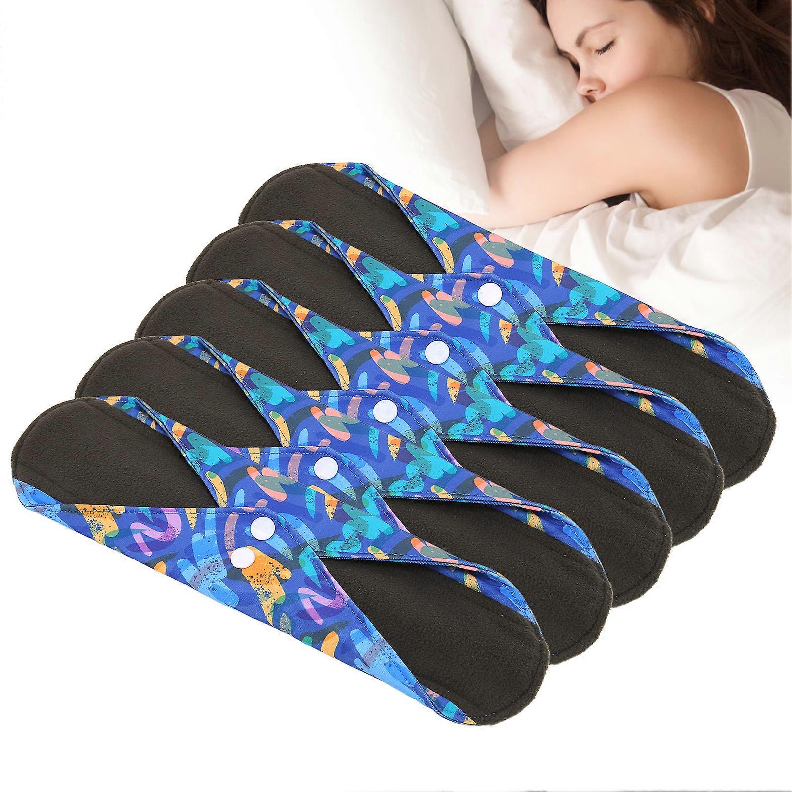 5pcs Washable Menstrual Pad Bamboo Charcoal Soft Printed Exquisite Reusable Sanitary Pad for WomenG46