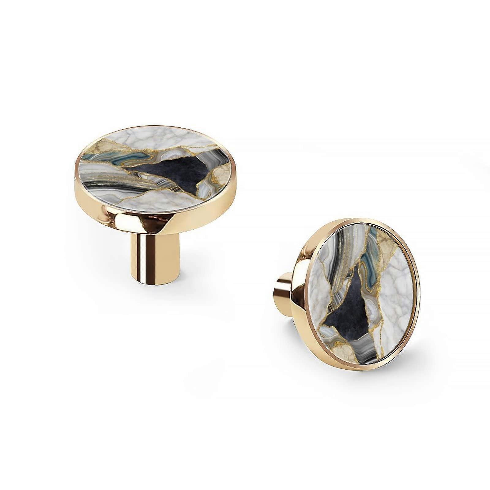 6 Pack Cabinet Knobs,Black Granite White Marble Agate with Gold Ve Dresser Knobs (Gold)