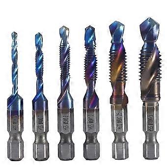 6 Pieces M3M10 Tap Set HSS Taps Countersink Deburring Metric Combination Bit Speed Steel 1/4' Quick Change Hex