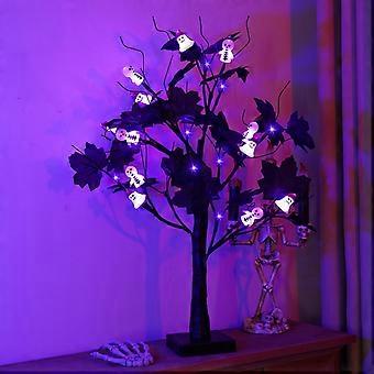 60 cm Halloween Decorative Artificial Birch Tree Lamp with 24 LED Ghost Lights, Battery or USB Operated Table Light for Autumn Decor
